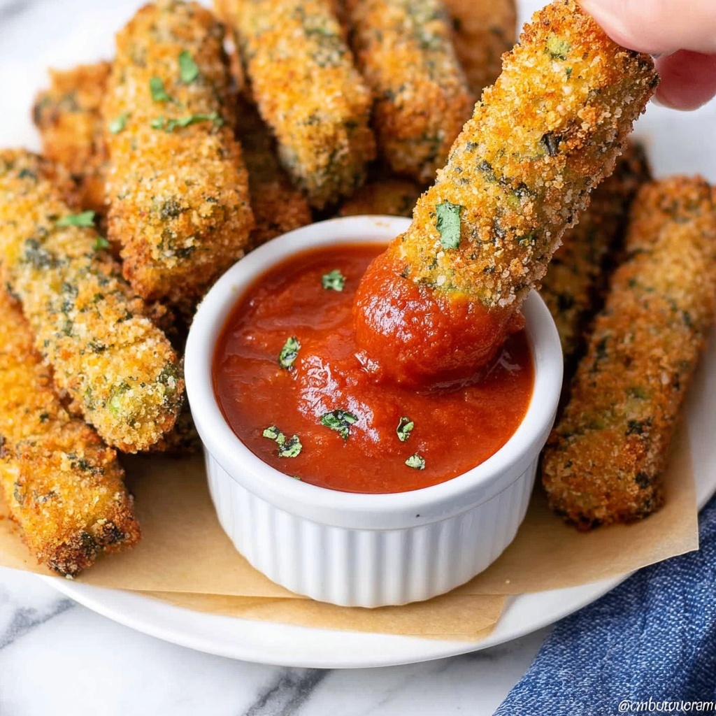- Serve: Remove the fries carefully and garnish with freshly chopped parsley. Serve warm alongside marinara sauce or homemade ranch dressing for dipping. Enjoy your crispy, healthier zucchini fries!