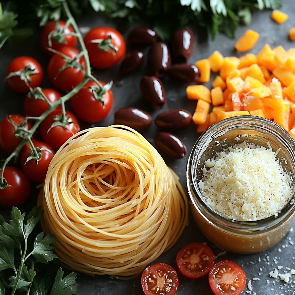 The magic of this Angel Hair Pasta Salad with Cherry Tomatoes, Black Olives, and Parmesan Recipe lies in its simplicity and freshness. Each ingredient plays a crucial role in crafting that perfect balance of flavors, textures, and colors that make this salad truly stand out.