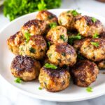 These flavorful Chicken Meatballs are a simple and delicious recipe featuring ground chicken mixed with Italian seasonings, Parmesan cheese, and fresh herbs. Perfectly baked to juicy perfection with a crispy outside, these meatballs make a great appetizer or main dish.