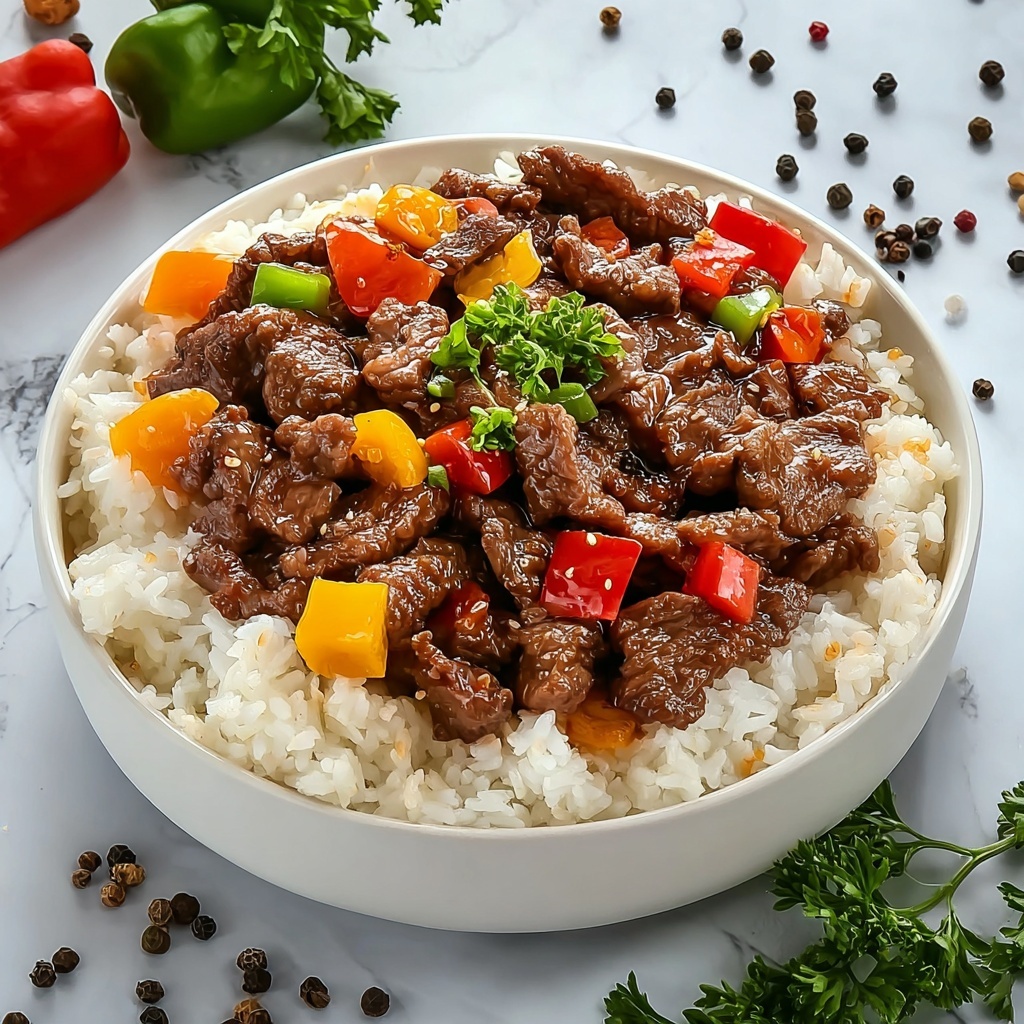 How to Serve Beef and Pepper Rice Bowl Recipe