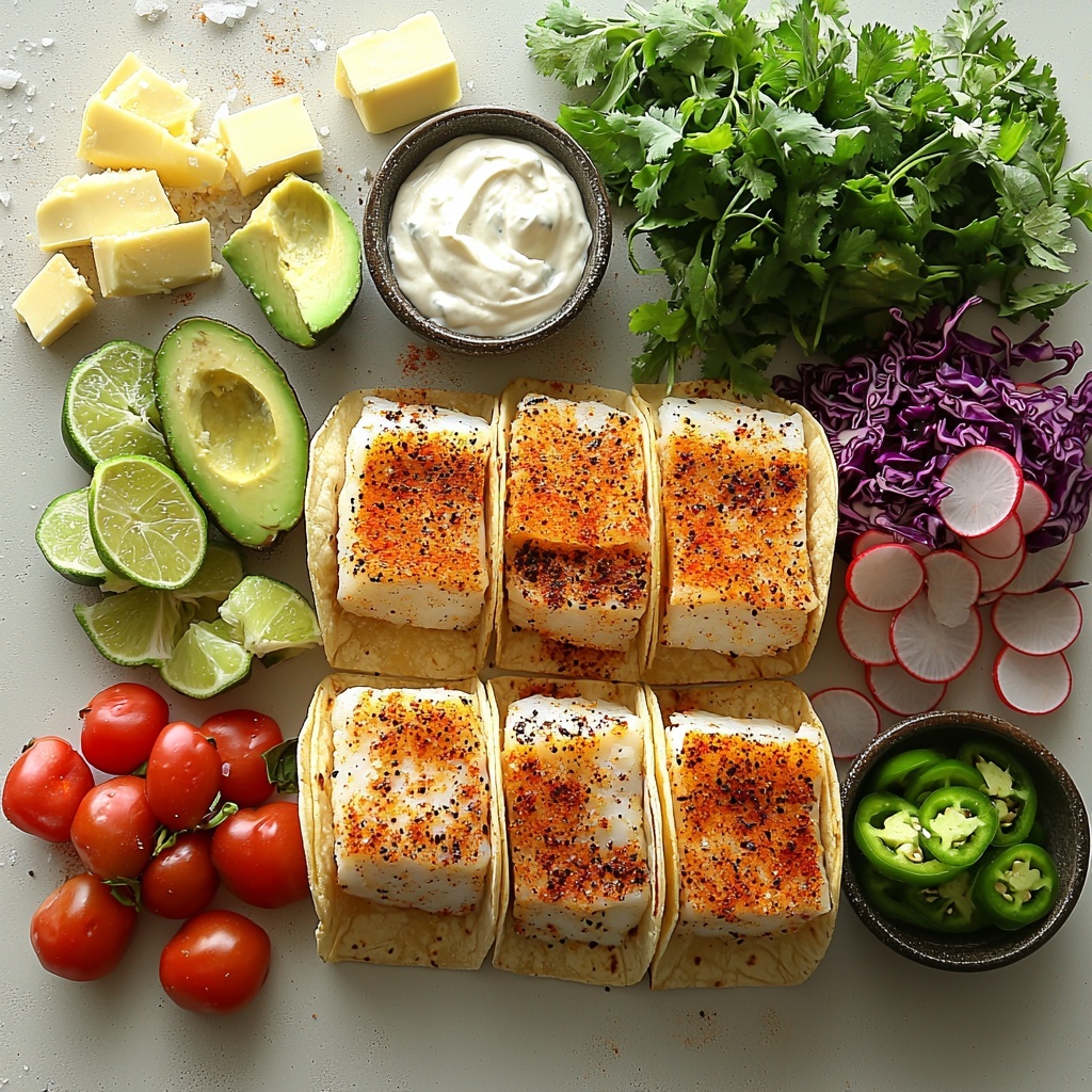 These Blackened Fish Tacos combine flavorful, spicy Cajun-seasoned cod with a creamy avocado sauce, fresh vegetables, and toasted corn tortillas for a quick and delicious meal. Perfectly cooked in a cast-iron skillet, the fish is blackened to perfection, providing a smoky and slightly sweet flavor balanced by crisp cabbage, radishes, and a hint of lime in the sauce. This easy recipe serves four and is ideal for a vibrant weeknight dinner or casual gathering.