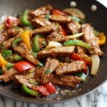 This Bourbon Chicken on the Griddle recipe features tender boneless chicken breasts cooked to perfection with a flavorful bourbon sauce, complemented by sweet bell peppers and onions. The dish is quick to prepare and boasts a delightful balance of sweet, tangy, and spicy flavors, making it a perfect weeknight dinner served over rice or your favorite side.
