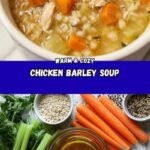 Hearty and comforting Chicken Barley Soup made with tender shredded chicken, wholesome barley, and fresh vegetables simmered in a flavorful chicken stock seasoned with herbs and spices. This easy-to-make soup is perfect for a nourishing lunch or dinner and serves 6 people.