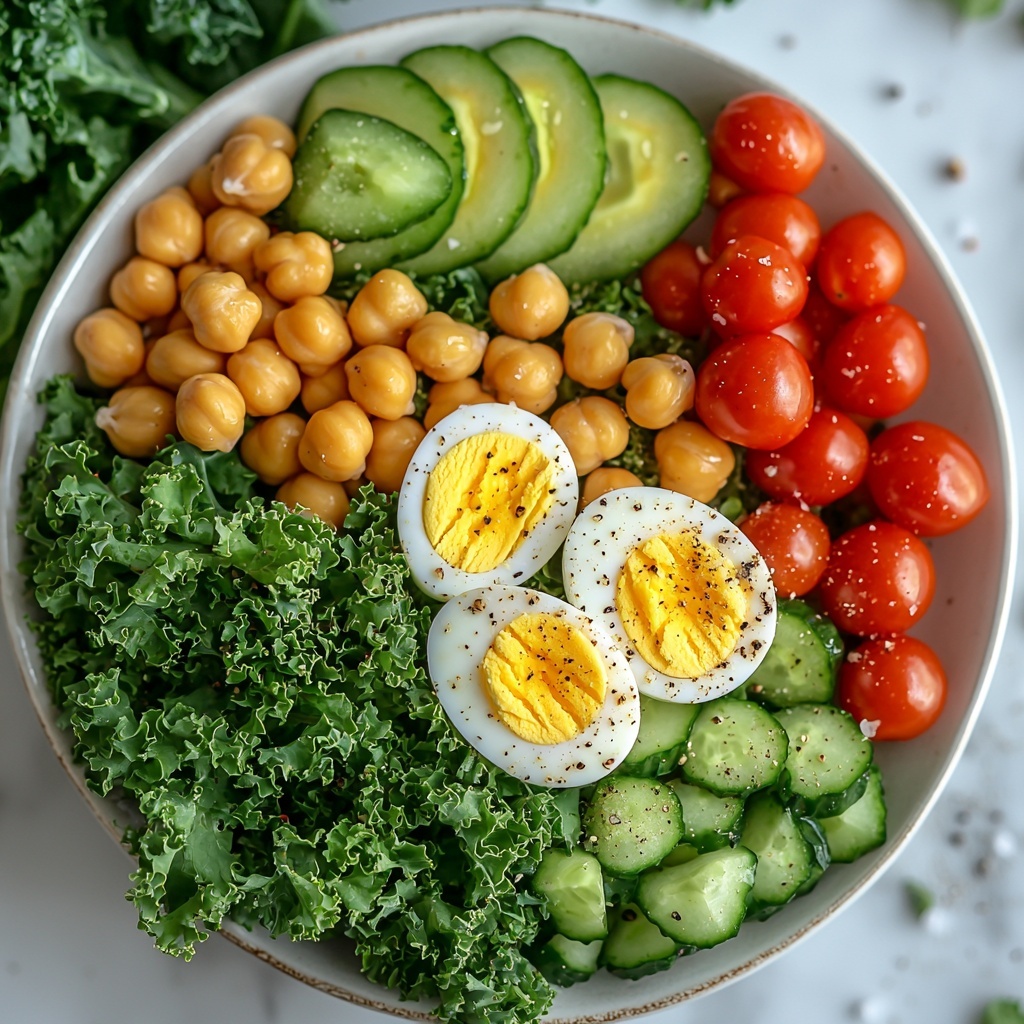 Sprinkle salt and freshly ground pepper over the assembled ingredients to enhance every flavor note. Add a pinch of paprika to each serving to give a subtle smoky warmth and a burst of beautiful color. For an extra burst of brightness and richness, consider drizzling a touch of olive oil and a squeeze of lemon juice—these simple finishing touches bring the Chickpea & Egg Power Bowl Recipe to life.
