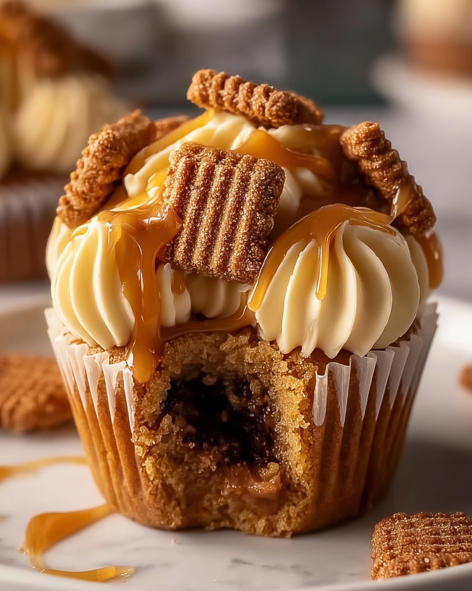 Whip the softened butter and cream cheese together until smooth and creamy. Beat in the dulce de leche, powdered sugar, and cinnamon until the frosting is fluffy and well combined. Using a piping bag or a knife, generously frost the cooled cupcakes. Finish with a sprinkle of crushed cinnamon cereal for that satisfying crunch and drizzle with caramel sauce to add the perfect finishing note.
