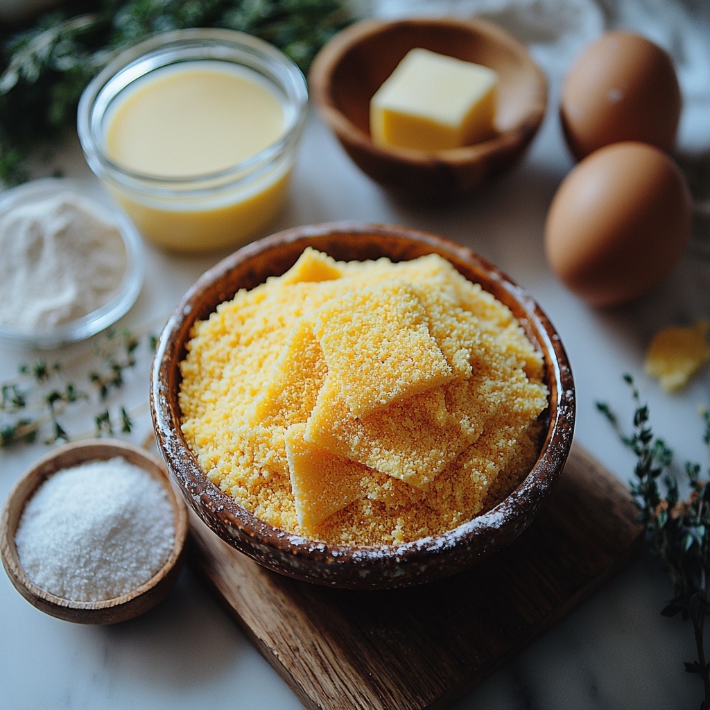 The beauty of this Classic Southern Cornbread Recipe lies in its simplicity. Each ingredient plays a crucial role: the stone-ground cornmeal gives it that signature texture and rustic flavor, the baking powder ensures a fluffy rise, and the buttermilk adds a delightful tang that balances the sweetness. Let’s take a look at what you’ll need to bring this traditional recipe to life.