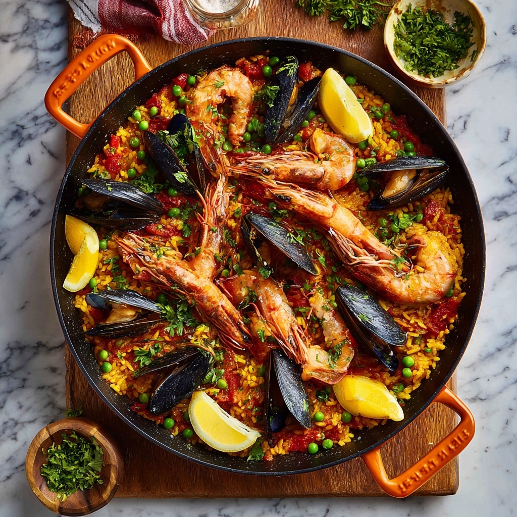 For a festive touch, serve your paella family-style right in the pan. This brings warmth to the table and encourages sharing. For a party twist, you could also portion it into individual mini skillets or shallow bowls, garnishing each with a sprig of parsley and lemon wedge for an elegant look.