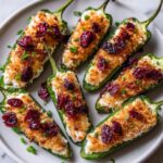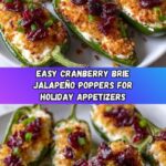 These Cranberry Brie Jalapeño Poppers are a delightful appetizer combining creamy Brie and cream cheese with a sweet-tart cranberry topping and a touch of heat from fresh jalapeños. Enhanced with optional crumbled bacon and breadcrumbs for crunch, these baked poppers make a perfect party starter or holiday treat.