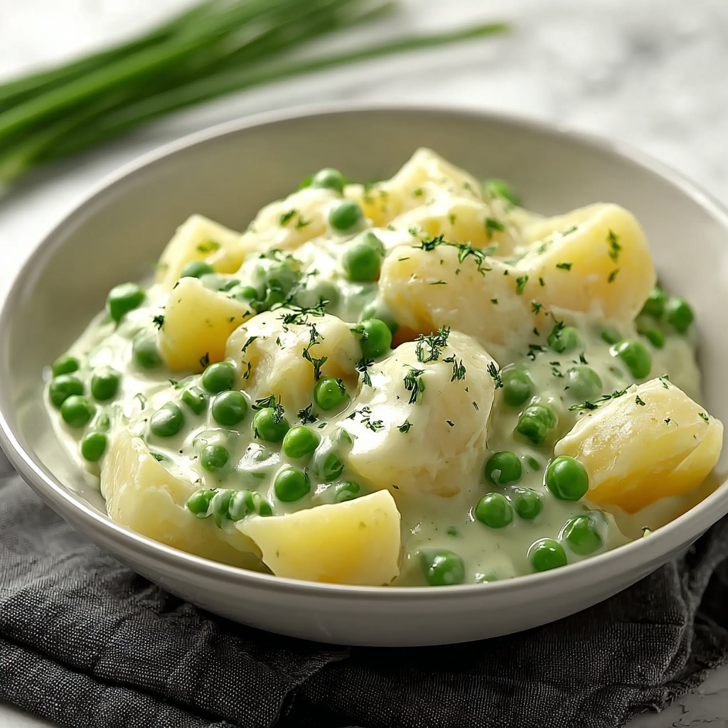 Creamed Peas and Potatoes is a comforting and creamy side dish featuring tender diced russet potatoes and sweet peas simmered in a rich heavy cream sauce with sautéed onions and a hint of dill. This easy recipe comes together with minimal ingredients, perfect for weeknight dinners or holiday meals.