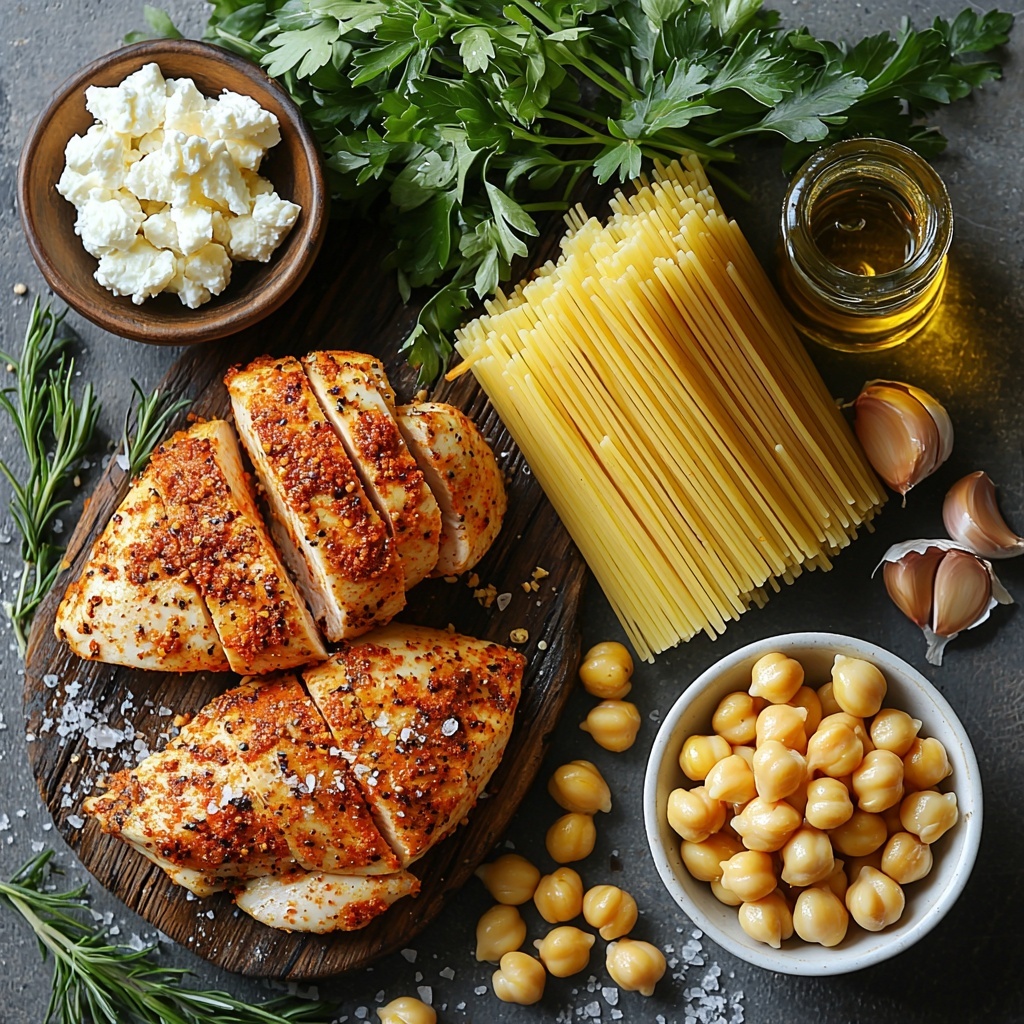 The magic behind this Creamy Cajun Chicken Pasta with Roasted Garlic Feta and Crispy Chickpeas Recipe starts with a handful of simple yet essential ingredients. Each one is chosen to bring out the bold flavors, creamy textures, and the perfect crispy finish that makes this dish shine.