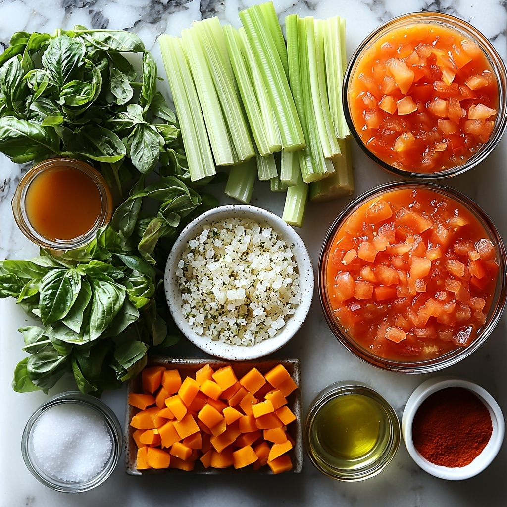 Every ingredient in this Creamy Tomato Basil Bisque Recipe plays a star role, bringing color, flavor, and richness to the pot. The fresh vegetables create a natural sweetness and depth, while the herbs and seasonings elevate the soup with aromatic warmth. Each component is simple yet essential to crafting this silky, comforting bisque.