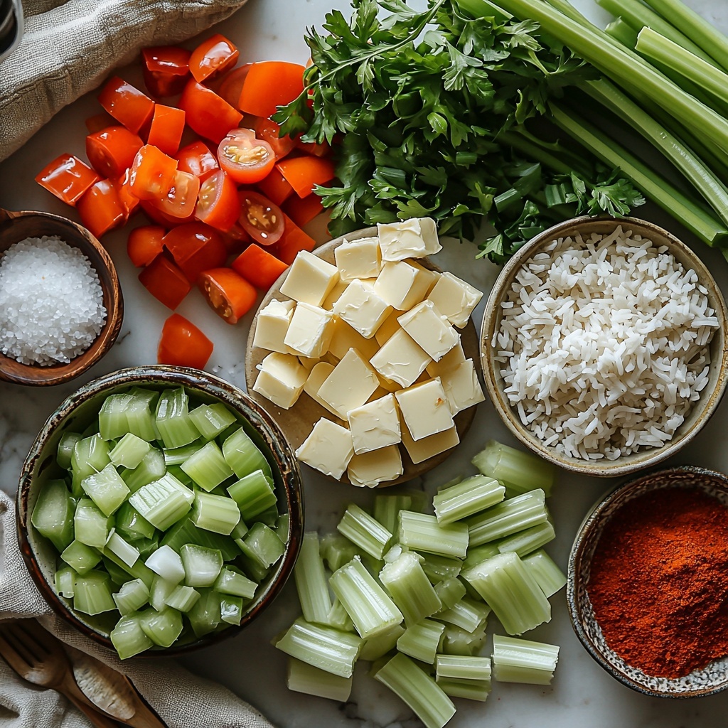 1. Sauté Vegetables: In a skillet, melt the butter over medium heat. Add the chopped green pepper, diced onion, and diced celery, sautéing until the green pepper is tender and vegetables are fragrant.