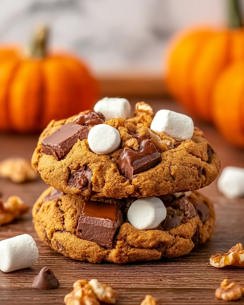 Pair your pumpkin s’mores cookies with a warm cup of spiced chai tea or a rich hot chocolate for the ultimate cozy experience. Fresh apple slices or a scoop of vanilla ice cream also make wonderful companions.
