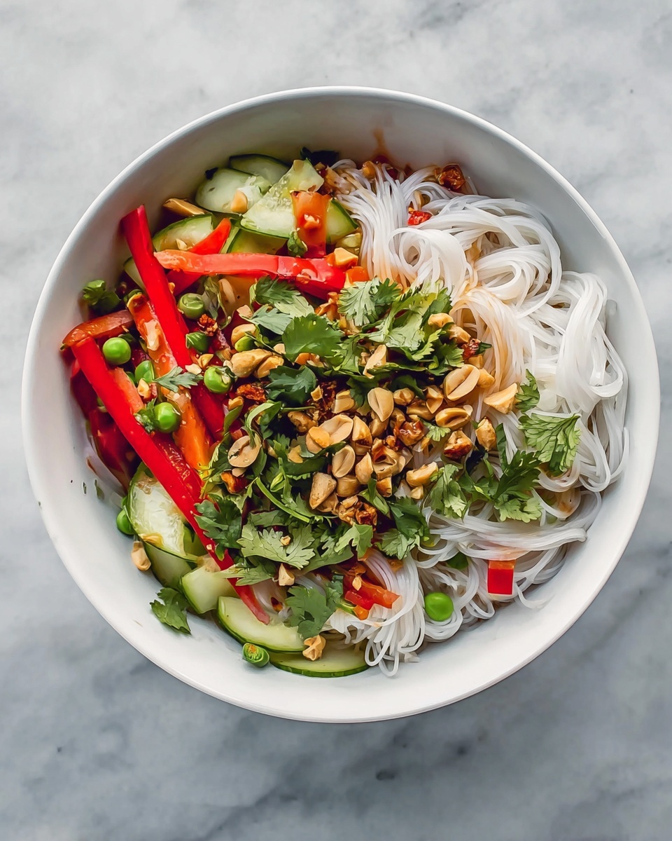 The beauty of this Fresh Thai Inspired Noodle Salad Recipe lies in its simplicity and the freshness of the ingredients. Each component has a vital role, contributing crunch, zest, creaminess, or just the right pop of herbal brightness, making the salad perfectly balanced and incredibly satisfying.