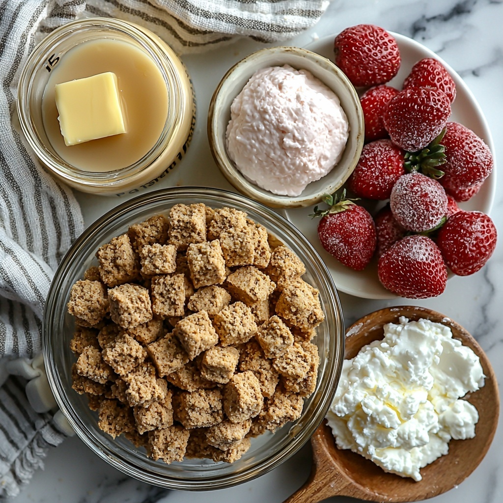 Keeping this recipe simple yet nutritious is key. Each ingredient plays a crucial role in building the classic cheesecake flavor, texture, and the vibrant strawberry punch that makes these bites so special. Here’s everything you need to create this wholesome dessert effortlessly.