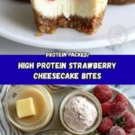 These High Protein Healthy Strawberry Cheesecake Bites are a delicious and nutritious dessert option, combining creamy cheesecake filling with a crunchy graham cracker crust and topped with a fresh strawberry sauce. Packed with protein from cottage cheese, Greek yogurt, and protein powder, they make a perfect guilt-free treat or post-workout snack.