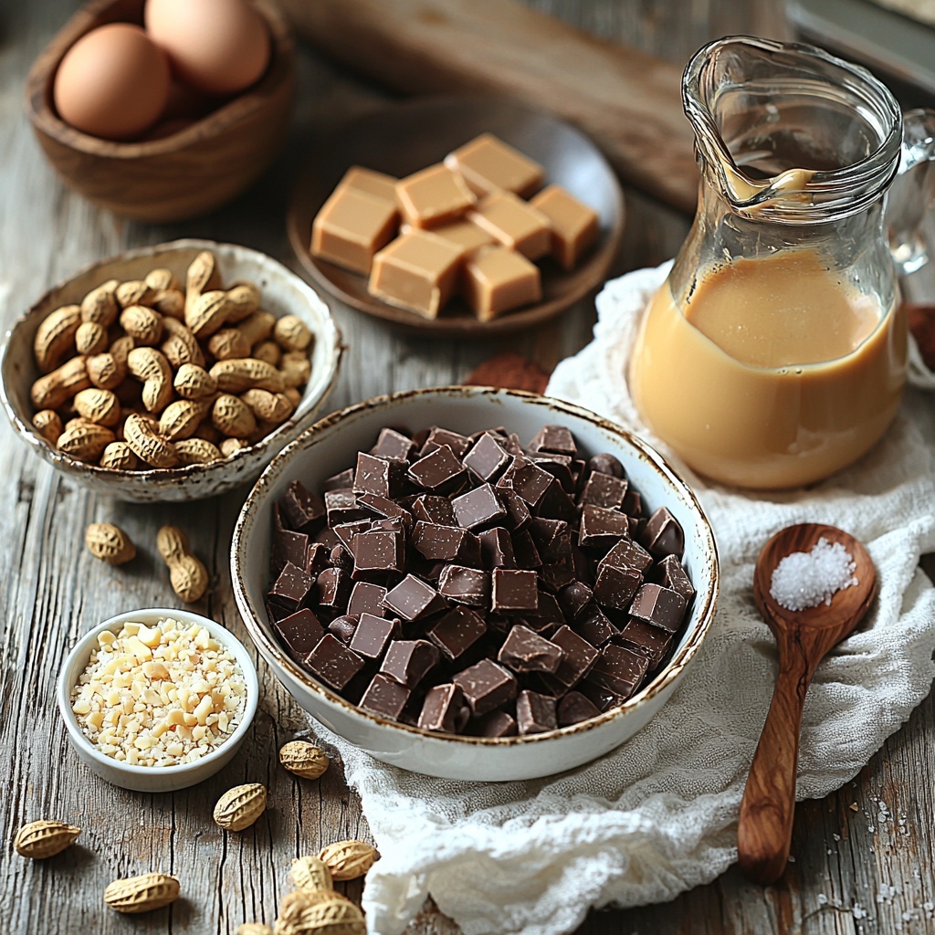 These ingredients are delightfully simple but essential for building the perfect balance of flavors and textures. Each component plays a key role: the chocolate adds that luscious richness, the nougat brings marshmallow-like fluffiness, peanuts offer a satisfying crunch, and caramel introduces that silky sweetness.