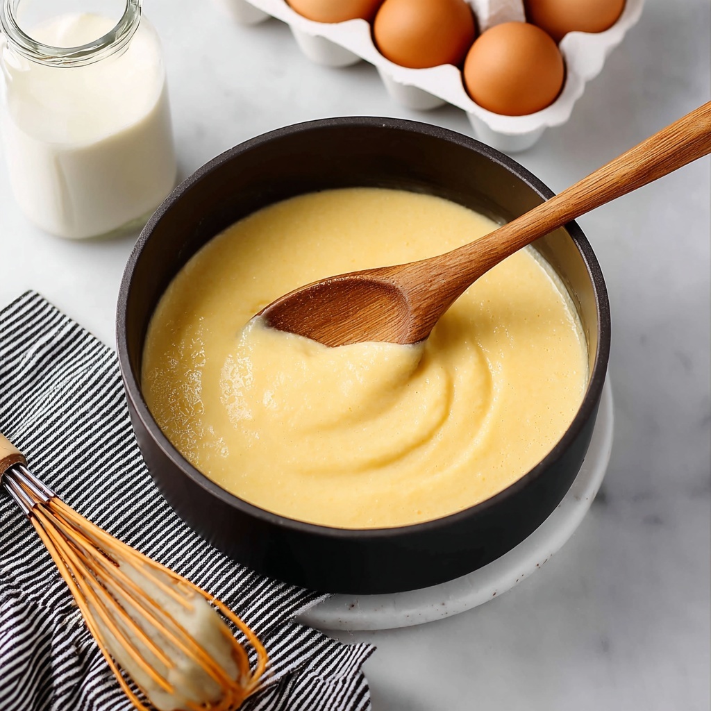 - Combine Ingredients: Whisk together the whole milk, heavy cream, granulated sugar, cornstarch, egg yolks, and vanilla extract in a medium saucepan off the heat to fully integrate all the components before warming.
