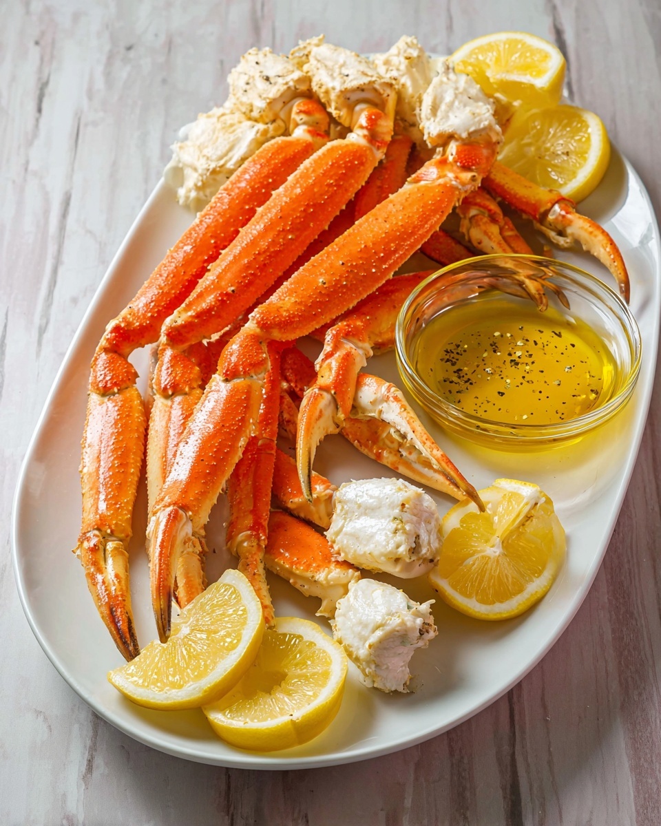 Nothing complements crab legs better than a sprinkle of fresh herbs like parsley or chives, adding a pop of color and fresh aroma. A wedge of lemon placed on the side brightens flavors with each squeeze. You can even drizzle a bit of browned butter or garlic butter over the crab right before serving to impress your guests.