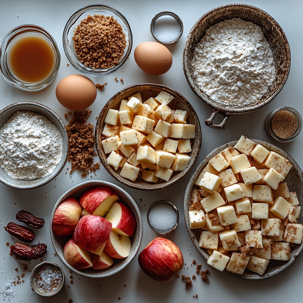 - Preheat and Prepare Fruit: Preheat your oven to 350°F (175°C). Peel and slice 2-3 apples and chop 1 cup of dates into bite-sized pieces.