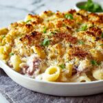 This Irresistibly Comforting Chicken Cordon Bleu Casserole combines shredded chicken, black forest ham, and Swiss cheese baked under a creamy mustard sauce and crispy Panko breadcrumb topping. Perfectly layered and baked to golden perfection, this hearty casserole offers all the flavors of classic Chicken Cordon Bleu in a comforting, easy-to-make dish ideal for family dinners or gatherings.