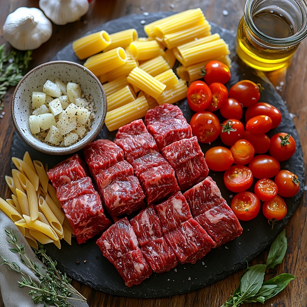 Getting together this One-Pot Zesty Steak Pasta Recipe is surprisingly simple because each ingredient plays a starring role—whether it’s the meaty goodness of the steak or the bright colors of the bell peppers adding texture and freshness. Here’s what you’ll need to bring these flavors to life: