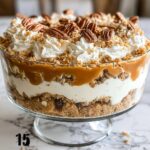 - Assemble Trifle: Layer the trifle dish with the prepared graham cracker crust, followed by the cheesecake filling, and then the warm pecan topping. Repeat layers as needed until the dish is full.