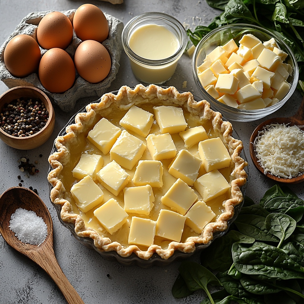 Each ingredient in this Quiche Florentine Recipe is simple yet essential, coming together to create a dish bursting with flavor, creamy texture, and visual appeal. From the fresh spinach to the nutty Gruyere cheese, these ingredients play a vital role in crafting a perfect quiche.