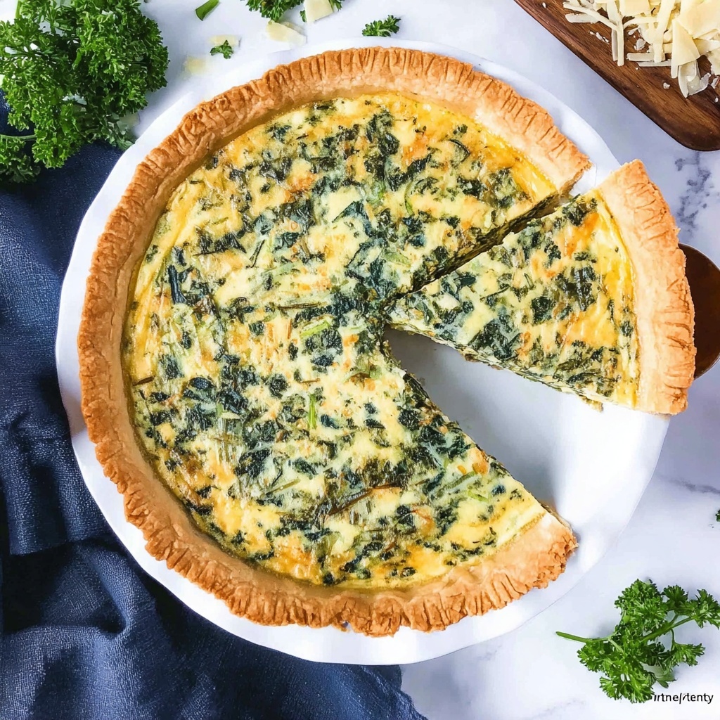 This Quiche Florentine is a classic savory pie that features a flaky pie crust filled with sautéed spinach, sweet onions, garlic, and a rich custard base of eggs and heavy cream, all topped with melted Gruyere or Swiss cheese. Perfect for brunch, lunch, or a light dinner, this quiche combines comforting flavors with a delicate texture and is finished with a sprinkle of fresh parsley for a bright touch.