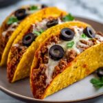 Divide the flavorful meat mixture evenly among the tortillas, then top each with shredded mozzarella and sliced black olives. The mozzarella melts to golden gooeyness, while the olives add a subtle briny burst, making every bite exciting.