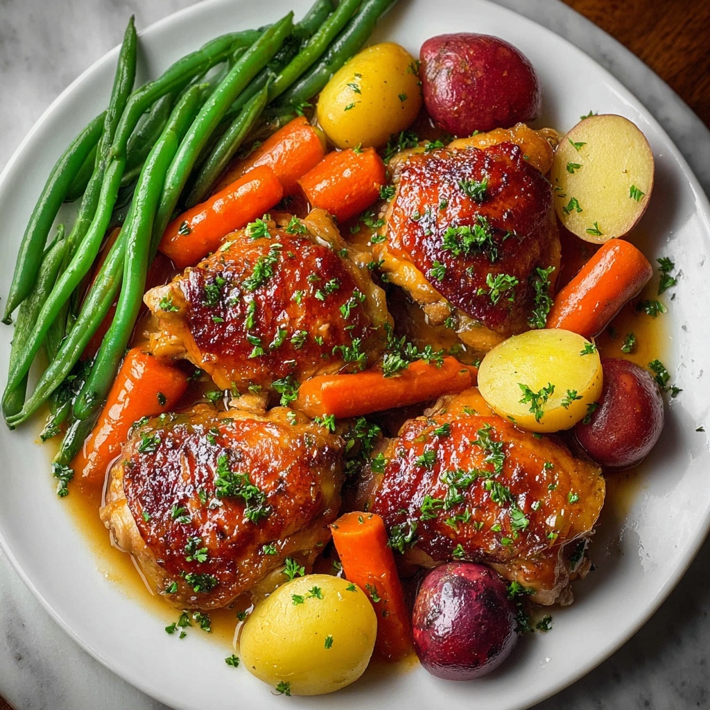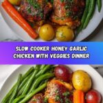 A comforting and easy Slow Cooker Honey Garlic Chicken and Veggies recipe featuring tender chicken breasts or thighs cooked with hearty carrots, red potatoes, and green beans in a sweet and savory honey garlic sauce. Perfect for effortless weeknight dinners with minimal prep and hands-off cooking in a slow cooker.