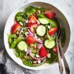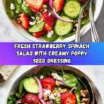 A refreshing and vibrant Strawberry Spinach Salad topped with tangy lemon poppy seed dressing, fresh herbs, crunchy walnuts, and creamy feta cheese. Perfect for a light lunch or a colorful side dish.