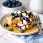 - Rest and serve: After baking, let the casserole rest at room temperature for about 10 minutes to cool slightly. Serve warm topped with extra fresh blueberries and a drizzle of maple syrup for added sweetness and freshness.