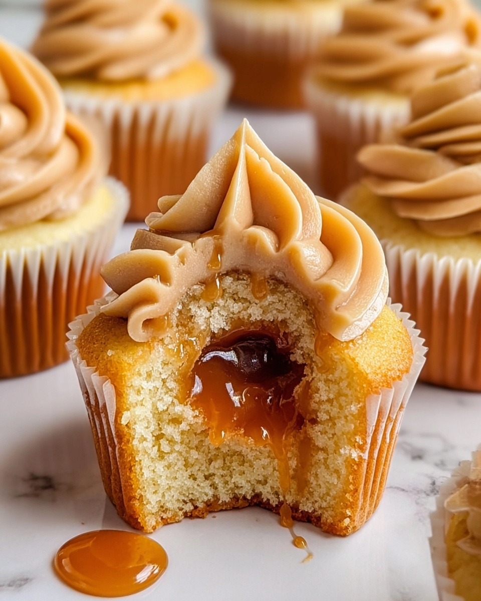 To gently warm your cupcakes, pop them in the microwave for about 10 seconds or until just warm — this makes the caramel sauce gooey and enhances flavor without drying them out.